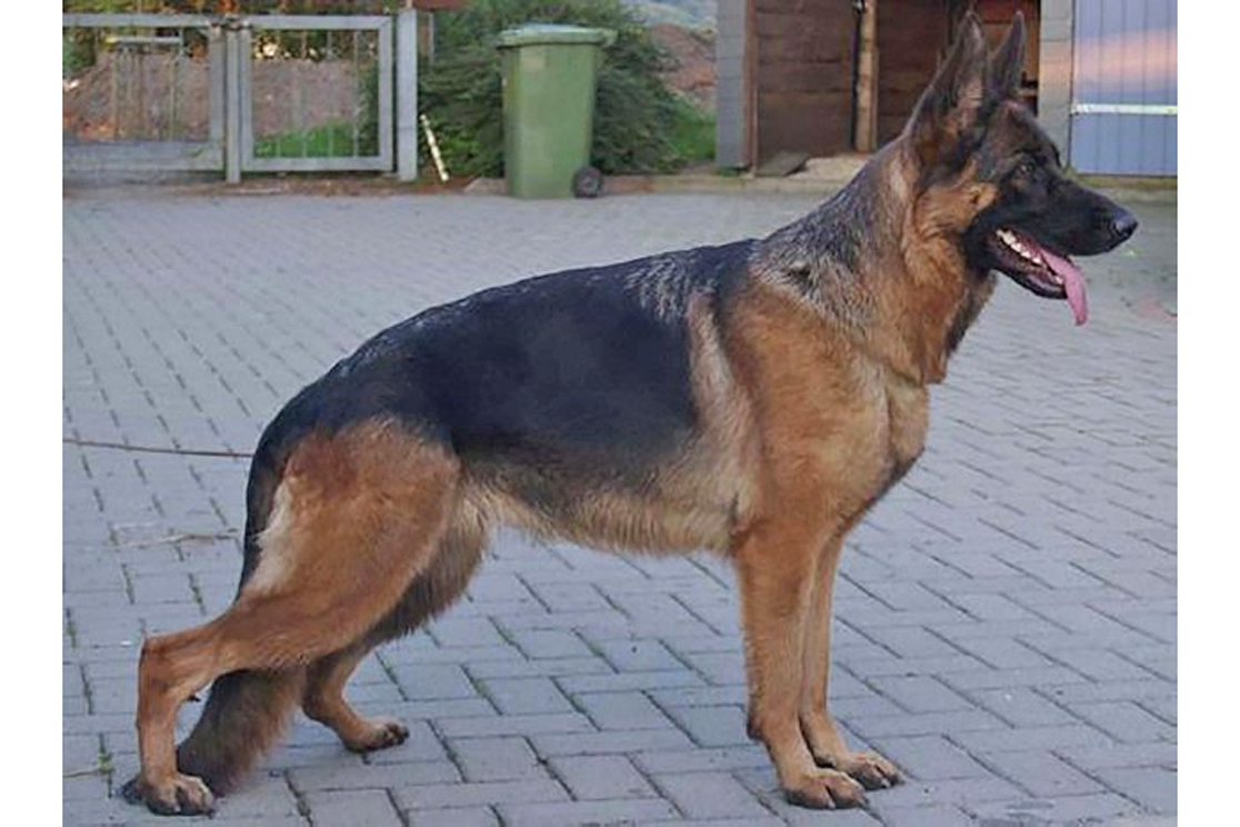 Big, strong, very good bone strength, very good building conditions, very good male head, high and long withers, straight back, in a good position the croup could be longer, correct angulation, the upper arm should be sloping. Correct front, straight front and rear, expansive corridors from effective supplies. TSB pronounced.