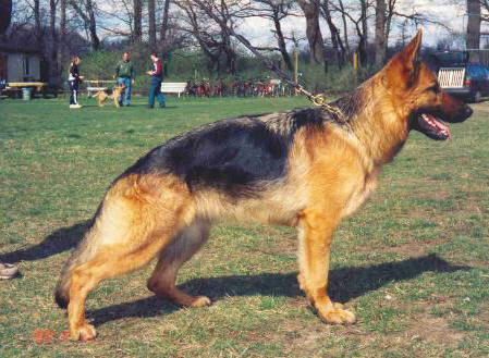 Bigger, very typical, strength and substantial, very well developed, very good Structure, very good Withers, firm back, very good situation and length of the croup. Very good angulations and Brisket in proportion, correct front, very outreaching, strong gait. Safe nature, hardness, courage and combat impulse pronouncedly; does not discharge. V. Very typical, very well developed, drying and firmly. VI. To the improvement of the type, the movement and the angulations.