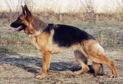 Expressive one, medium sized, Strong and substantial. Very good Structure, high Withers, good upper line, is enough, for well angled croup. Very good angles of the pre and hind angulation. Normal Brisket in proportion, clean front. Correct signal element sequence, strong, wide outreaching gait with effective supply and free precedence as well as good total strength. Safe nature, UCB pronouncedly; discharges.
