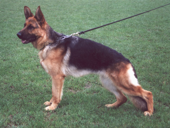 Very even-moderate, developed, large, medium strong, substantial, very dry, firm male with good Structure and very good expression. High Withers, beautiful line, good length and situation of the croup. Very well hind pre and hind angulation, matured Brisket in proportion, clean front. Clean-stepping ones it shows flowing, roomy gait with strong supply and free precedence. Safe nature, UCB pronouncedly; discharges.