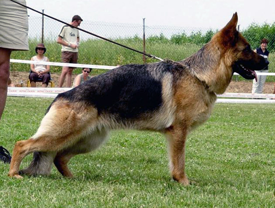 Koer report: Medium sized, strongly, contentful, drying and firmly, very good expression, very good building conditions, very good Gepraege. High, long widerrist, straight lines, firm back, good length and situation of the croup. Very well bent, balanced chest conditions, correct front, straight-stepping, very roomy, strong, flat courses with very good, going over the soil, raisedness. Safe nature, UCB pronouncedly; discharges. Wiederankoerung 2003: In very good condition one introduces.