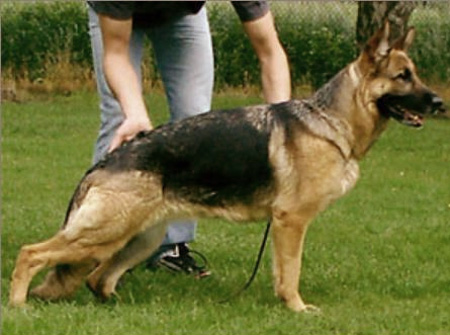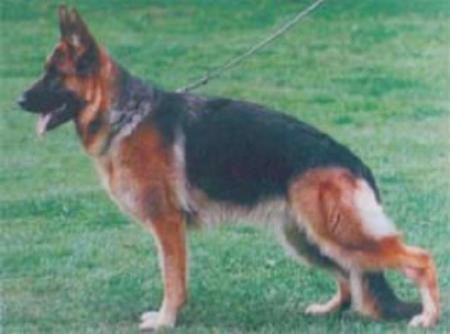 Very expressive, big, powerful and full-bodied, constructed in very good height-length ratio, dry and firm male. Strong head with pronounced mask. High withers, straight, firm back and good length and situation of the croup. Very good angular positions of the front and rear hand, balanced rust relationships, commendable correct front. Just step sequence. Wide outreaching gait with good back transmission. Safe nature, UCB pronounced.