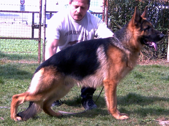 Largely, force and contentful, remarkably drying and firmly with very good expression. Well stored croup in correct length. Very good pre and rear spar and bending, balanced chest conditions, straight signal element sequence. Strong supply and free precedence. Safe nature, UCB pronouncedly; discharges. ----> 2004: Well medium sized, centralstrong, contentful, stretched Ruede with strong head, high widerrist and very good length and situation of the croup. Remarkably good pre and good rear spar a...Read more
