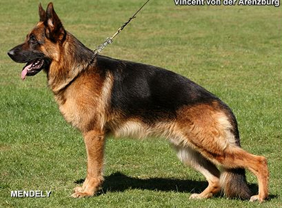 Bigger, Strong, very good expression-striking masculine head, high Withers, firm back, well angled croup by sufficient length, very good angulations, balanced Brisket in proportion, clean front-slightly narrow-stepping in the back, outreaching gait with striking effective supply and free precedence UCB pronouncedly; discharges.