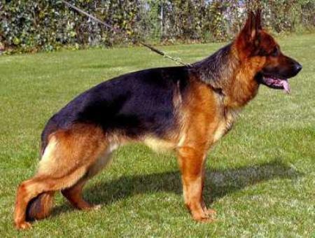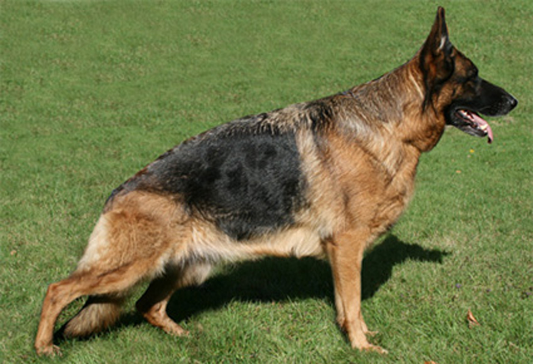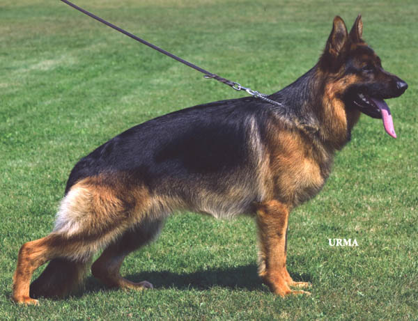 ausdrucksvoller Rüde mit gutem Gepräge. Hoher Widerrist, schöne Linie, gute