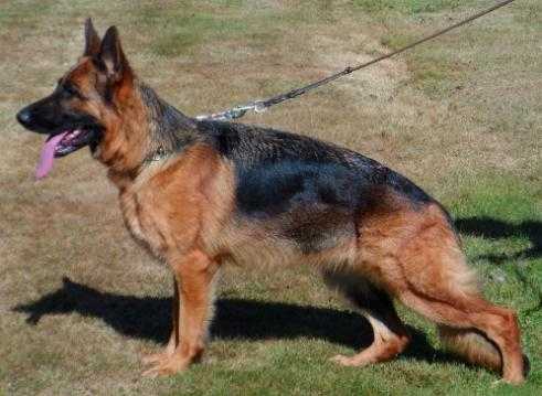 Groß, ausdrucksvoll, sehr gut pigmentiert, sehr gutes Höhen-Längenverhältnis. Hoher Widerrist, fester, gerader Rücken, gute Kruppe, sehr gute Winkelungen, ausgeprägte Brustverhältnisse, gerade Front. Geradetretend, kraftvolle Gänge. Wesen sicher, TSB ausgeprägt; läßt ab.