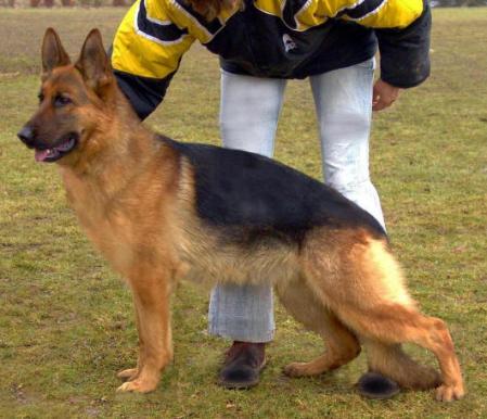 Large, medium strong, dry and firm, the running bones are proportionate to the body, good expression. High withers. Strong straight back, croup has good length, slightly steep. Very good angulated in front and rear, normal chest proportions. Straight front. Straight moving in front and rear. Harmonious far reaching gaits with good back transmission. Sure temperment, the ability to cope with stress is prounounced, it releases.