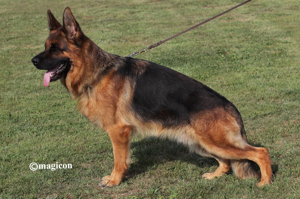 ĂĹ“bermittelgroĂŸ, kraft- und gehaltvoll, sehr guter Ausdruck, sehr gut pigmentiert, intensive Schwarzanteile auf dem RĂÂĽcken, sehr gute Gesamtfestigkeit, ausdrucksvoller, kräftiger Kopf, dunkles Auge, hoher, aufgesetzter Widerrist im Stand und in der Bewegung. Gleichmässiger Verlauf der Ober- und Unterlinie, gute Länge und Lage der Kruppe, gut gelagerter, langer Oberarm, sehr gut gewinkelte Hinterhand, korrekte Front, gut ausbalancierte Gänge, viel Raumgewinn. Sicheres Wesen, TSB ausgeprägt.
