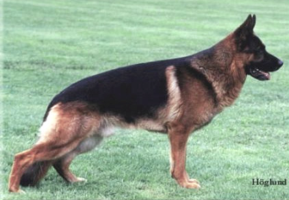 Over middelstor, ganske kraftfuld, billedskøn tæve af den ønskværdige type, smukke højde-længdeforhold, smukt pigmenteret, god almen fasthed. Herligt udtryksfuldt hoved, god ryg og overlinie, gode krydsforhold, velvinklet for, gode brystforhold med godt underbryst, fortrinlig vinklet bagpart, kraftfulde køller, lige front. Langtrækkende og rosværdige bevægelser, fuldender det smukke helhedsindtryk. Udpræget mod og kampdrift.
