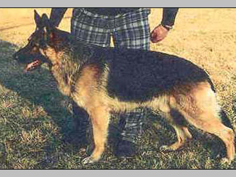 Typ- und ausdrucksvoll, groß, trocken und fest mit korrekten Gebäudeverhältnissen hohem Widerrist. Sehr gute Ober- und Unterlinie guter Kruppe. Sehr gute Winkelungen der Vor- und Hinterhand. Korrekte Brustverhältnisse, gerade Front. Geradetretend, sehr raumgreifende, kraftvolle Gänge mit freiem Vortritt und wirksamen Nachschub. Sicheres Wesen, Härte, Mut und Kampftrieb ausgeprägt; läßt ab.