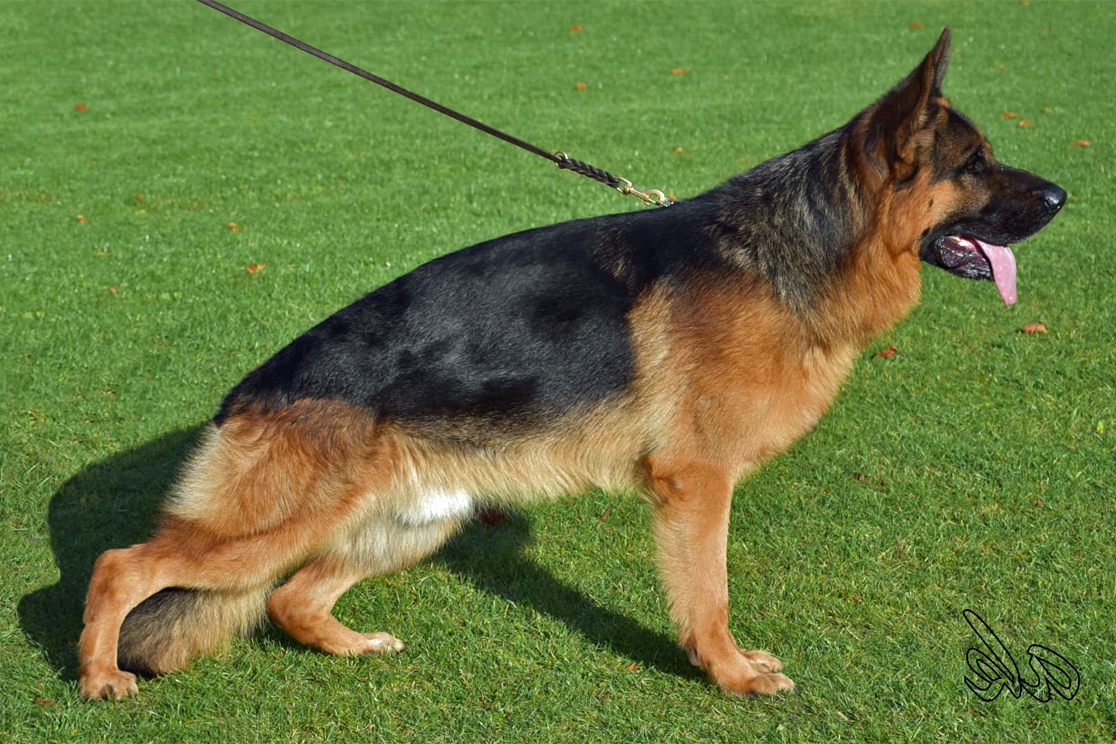 Medium-sized, full-bodied, strong, dry and firm, good building conditions, good expression, very well pigmented, feminine. High, long withers, straight, firm back, good length and position of the croup. Good front, very good angled back, balanced chest, straight front. Pedaling straight, very powerful, very expansive corridors. Safe being, TSB pronounced.Special Qualities: Powerful and substantial breeding female.V14 - 2019 World Championship Show in Germany (Bundessiegerzuchtschau (BSZS/GHKH) ...Read more
