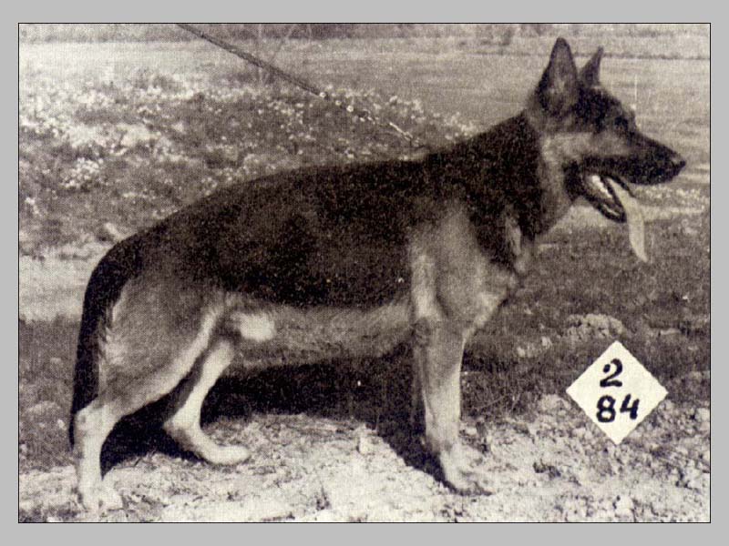 Just medium tall, medium strong, expressive male with good harmony and lines, firm and tight in structure. Striking head with firm ears and dark eye. Well flowing and firm topline with good angulation of front and rear. In all gaits he brings free motion with powerful action. He should not fill out any more in the lowerchest. Of his parents type.