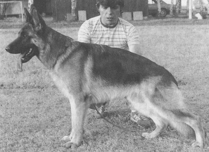 Over medium bitch in very good body structure, very much type and expression. High Withers, firm back, good length and situation of the croup. Good total angles, good Brisket in proportion, correct front. Outreaching, leichfuessige gait from firm back. Safe nature, hardness, courage and combat impulse pronouncedly.