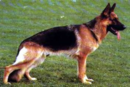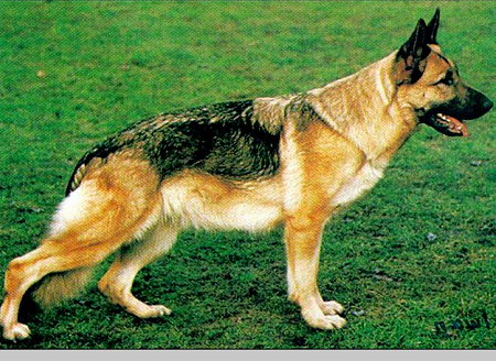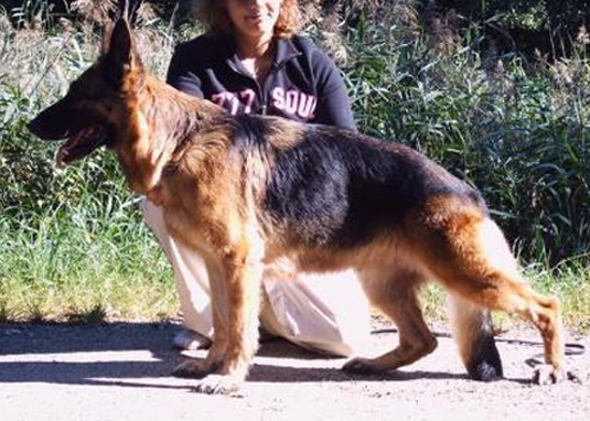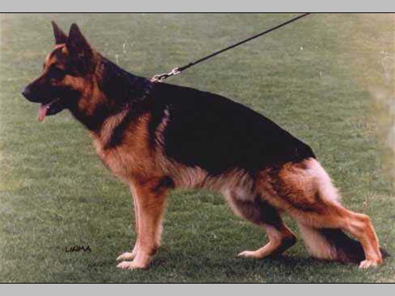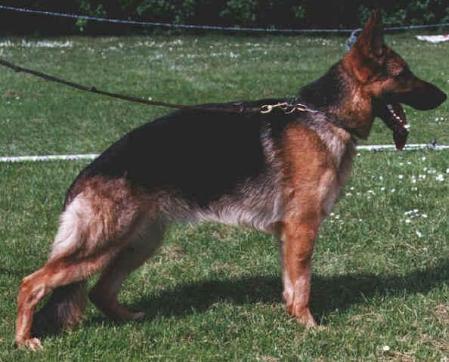 Bigger one, content and strong, good expression, while stationary and in the motion high Withers, firm back, well angled croup. Very good angulations of the pre and hind angulation, balanced Brisket in proportion, clean front. Correct signal element sequence, wide outreaching gait, strong supply, productive precedence. Safe nature, hardness, courage and combat impulse pronouncedly, discharge.