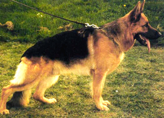 Largely, centralstrongly, very type and expressionful, drying, firmly, high Withers, firm back, somewhat short sloping croup. Very good pre and rear spar and bending, balanced chest conditions, correct front, in front and in the back straight, very good and spaceseizing courses, free precedence, productive supply goes. Safe nature, hardness, courage and combat impulse pronouncedly; does not discharge.