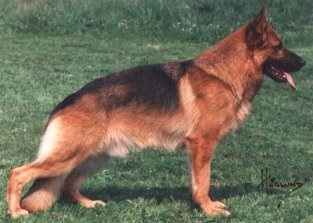 Hinterhandwinkelungen korrekt, Brustverhältnisse ausgeprägt, Front gerade.
