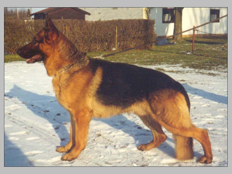 Bigger, force and substantial, very expressive, high Withers, beautiful back line, be enough, well angled croup. Good angulations and Brisket in proportion, correct front. Clean-stepping, wide outreaching gait. Safe nature, hardness, courage and combat impulse pronouncedly; discharges.