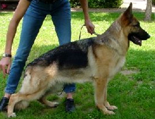 Koer report: Largely, strongly, expressionful, imprint strong, contentful, correct relationship from height to the length, high widerrist, firm back, well stored croup. Good bending of the pre and rear spar and, balanced chest conditions, normal front. Straight signal element sequence, expenditure-maturing courses, effective supply, free precedence. Safe nature, hardness, courage, combat impulse pronouncedly; discharges