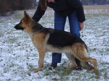 Koer Report: Large, centralstrong, typeful, dry and firm dog, very good upper line, somewhat short, sloping croup. Good one forwards -, very good rear spar and bending, balanced chest conditions, correct front. Goes in front and in the back straight, shows very good and spaceseizing courses. Safe nature, hardness, courage and combat impulse pronouncedly; discharges.
