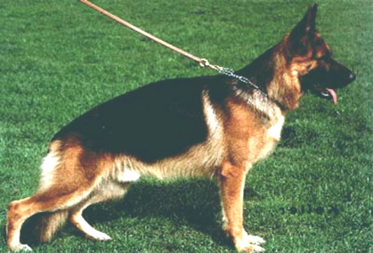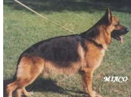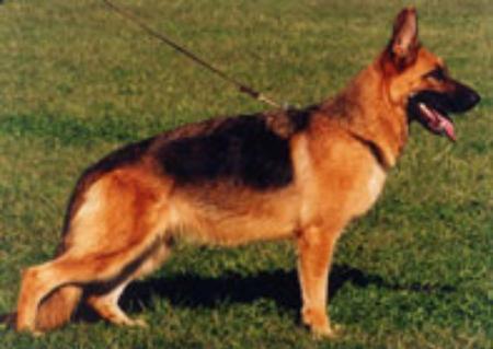 Sehr ausdrucksvoller, großer, kraft- und gehaltvoller Rüde mit hohem Widerrist, geradem Rücken und einer langen, gut gelagerten Kruppe. Gute Winkelungen und Brustverhältnisse, die Front ist korrekt. Geradetretend, weit ausgreifende Gänge mit kraftvollem Nachschub und freiem Vortritt. TSB ausgeprägt; läßt ab.