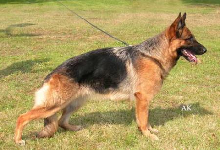 Particularly expressive, well pigmented, medium size, medium strong, stretched, high, long withers, well-aged back, good length and position of croup, very good rear angulation, laudable angulation of the forehand, correct chest proportions, straight front, straight step sequence generated from good back position he far-reaching, powerful gait with effective supply and free precedence. TSB pronounced; discharges.