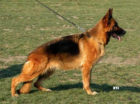 Over middelstor, udtalt harmonisk, ædel og velbygget, typefast, udtryksfuld tæve. Smukt udtryksfuldt hoved, mørke øjne, korrekt forløbende overlinie, velansat høj manke, fast ryg og lænd, velformet kryds af særdeles god længde. Særdeles godt vinklet for, fortrinligt vinklet bag, særdeles gode brystforhold, lige for. Bevægelserne er langtrækkende og kraftfulde med fortrinligt fraskub og effektivt og langt fremgreb. KMH udpræget, slipper.