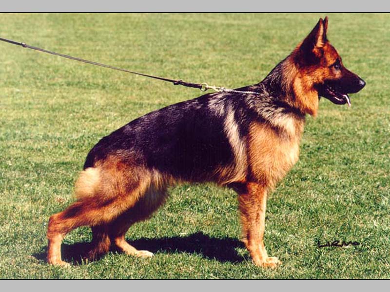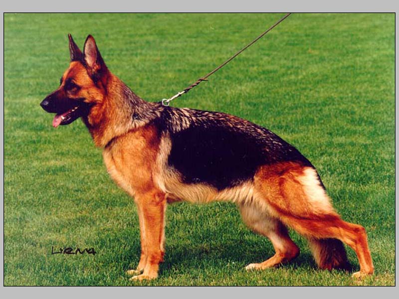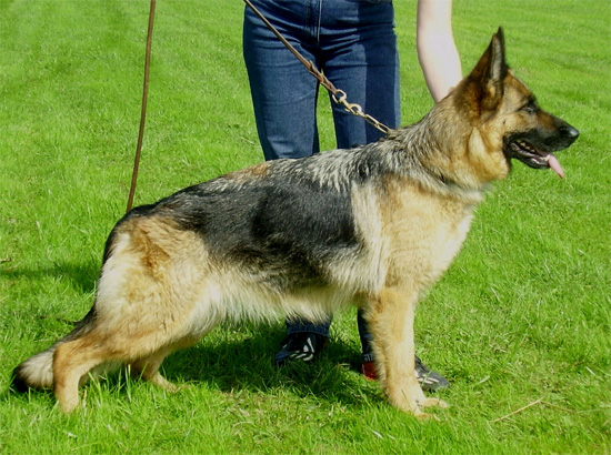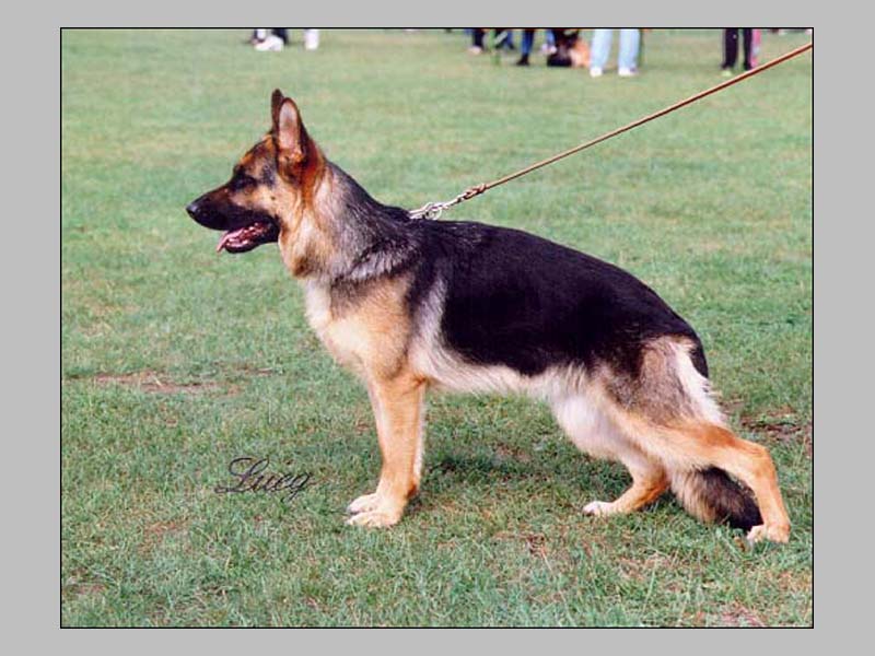 2002 Sieger Show Report: Bigger ones, very type and expressive, very drying and firmly, good bone strength, very good upper and Unterlinie, high Withers, well angled somewhat short croup, the upper arm and diagonally lie, very good rear spar and bending with Strong clubs, pronounced Brisket in proportion, the front central foot should be longer should be somewhat tauter, clean front, clean-stepping, very good supply, whereby the precedence some more free its achieve.