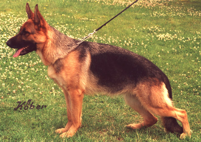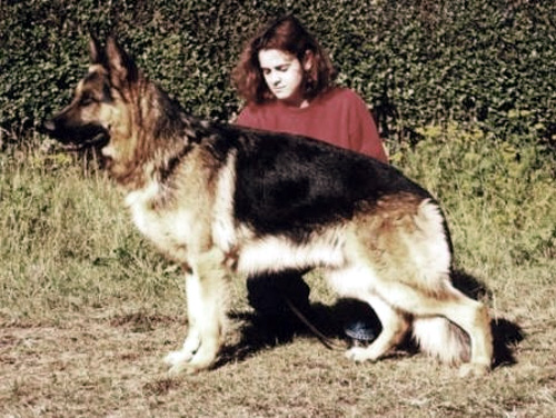 Voluminous one, strength and substanceful bitch with very good expression. Good Withers and RĂĽcken. Very good croup length and - situation. Perfect Winkellagen on the pre and Nachhand. Balanced Brisket in proportion, correct front, clean signal element sequence, ground covering gait with free precedence and effective supply. Very good back transmission. Safe nature, UCB pronouncedly; does not discharge.
