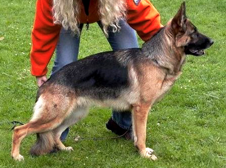 Largely, strongly, contentful, very drying and firmly, good expression, very good building conditions. High one, long Withers, straight lines, firm back, very good length and situation of the croup. In front well, in the back very well bent, balanced chest conditions, correct front. Straight line-stepping, very roomy, strong courses with very good raisedness and firmness. Safe nature, UCB pronouncedly; discharges.
