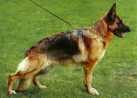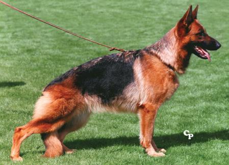 Good medium sized, type- and rich, well pigmented Hündün. Very good body proportions, very good running, solid topline, excellent angular relationships of the hindquarters, good angle ratios of the forehand. Correctly in the front, forceful actions in good stride, good-extending bottom line. Safe nature, TSB pronounced; does not discharge.