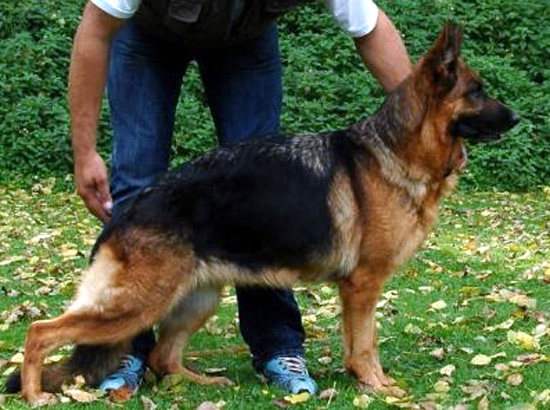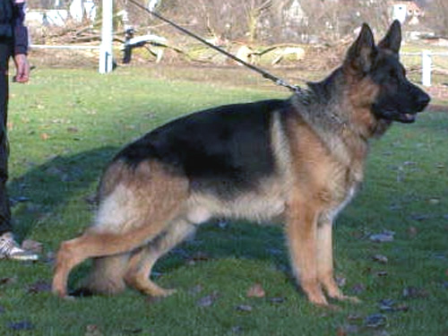 Bigger, strength and substantial, very good expression. Highly put on Withers, straight back, very good croup length and - situation. Balanced Brisket in proportion, very good bending on the pre and Nachhand. Correct front, clean signal element sequence. Elbow connection requires still the last movement. Convincing gait with free precedence and very effective supply. Very good back transmission, raised Trab. Safe nature, UCB pronouncedly; discharges.