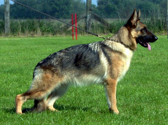 ausgeglichene Brustverhältnisse, gute Unterlinie, gerade Front und Schrittfolge.