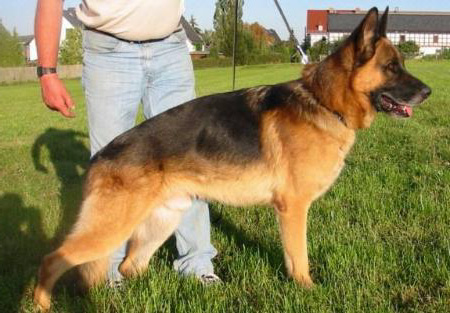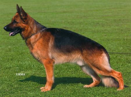 Type-full, large, strong male with high widerrist and firm back. Very good Shoulder blade upper arm situation. Straight front, good firmness in the front central foot. Correct bending of the rear spar and. The croup should be still somewhat longer. Straight signal element sequence. The courses are far expenditure-maturing with free precedence and effective supply. UCB pronouncedly; does not discharge.