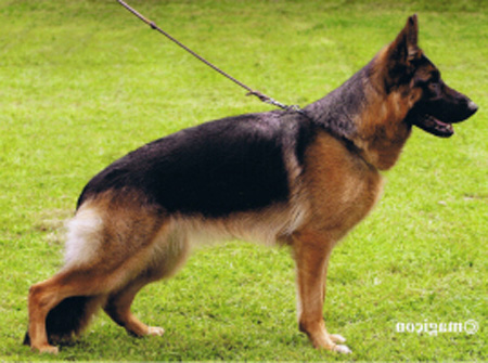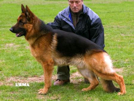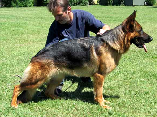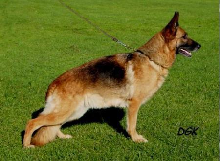 Very harmoniously developed, convey-large, attentive, dry, firm, very type and expressionful dog. High widerrist, beautiful line, good length and situation of the croup. Very good bending of the pre and rear spar and, matured chest conditions, straight front. Straight line-stepping it shows very liquid courses with strong supply and free precedence. Safe nature, UCB pronouncedly; discharges.