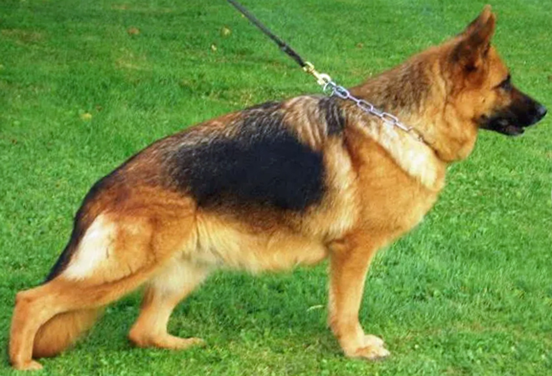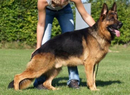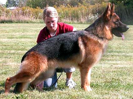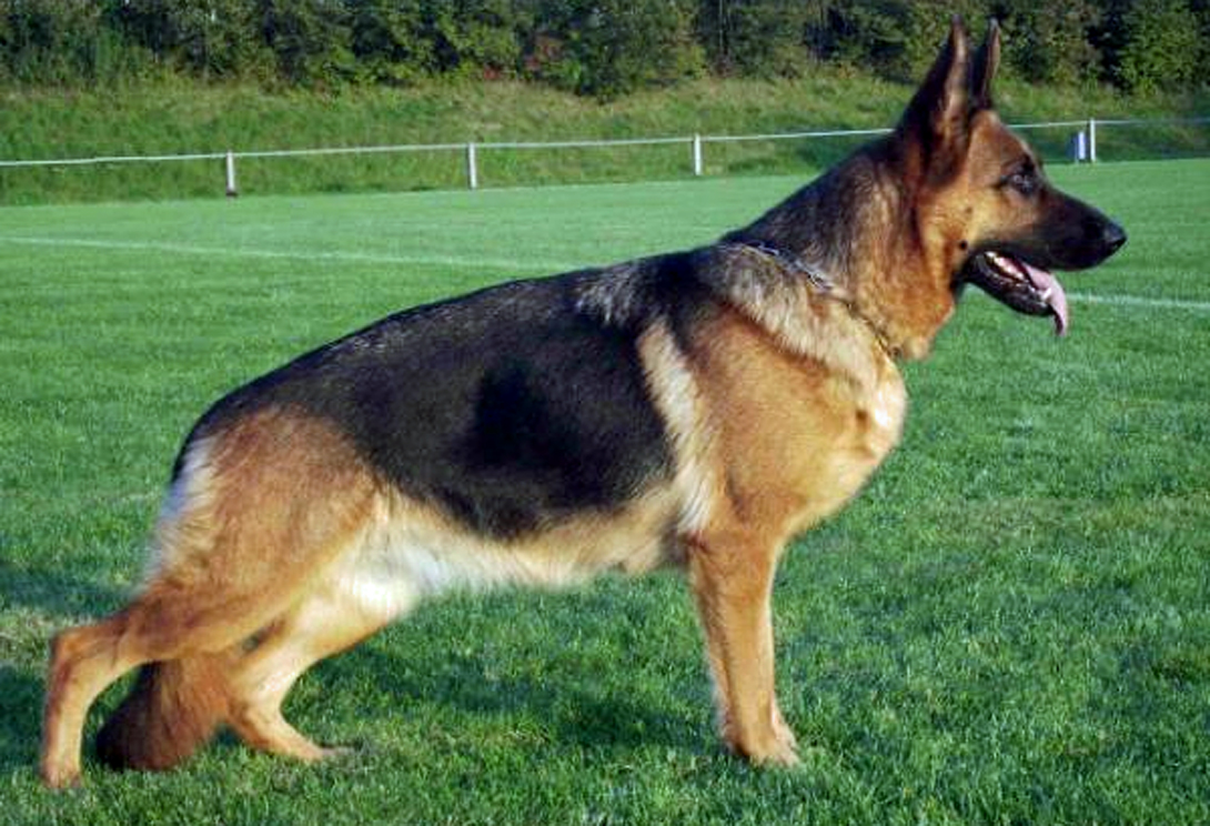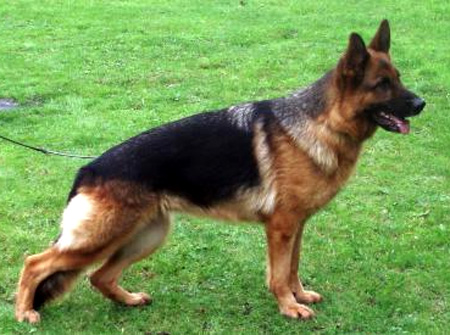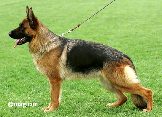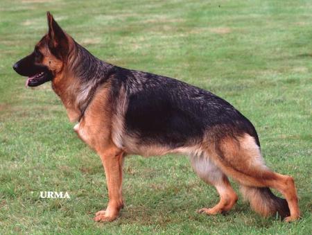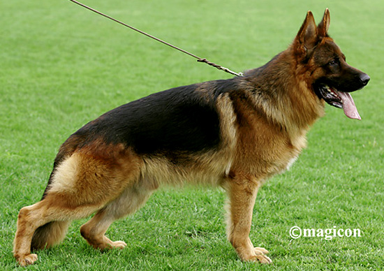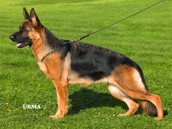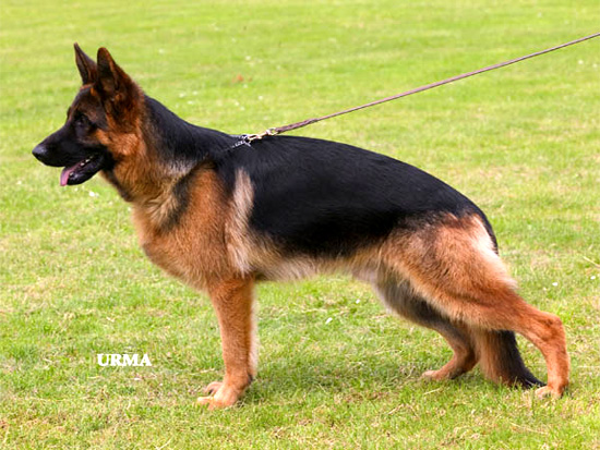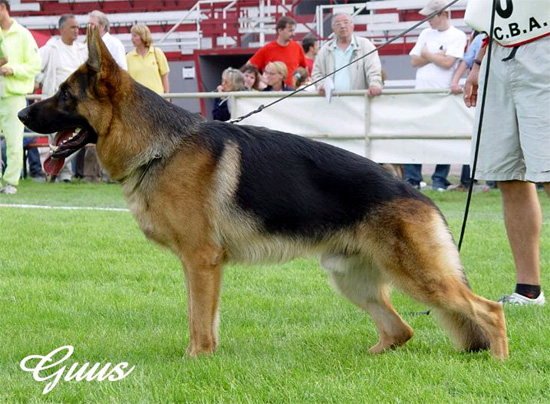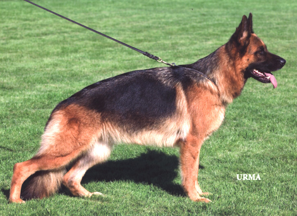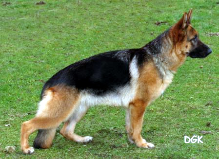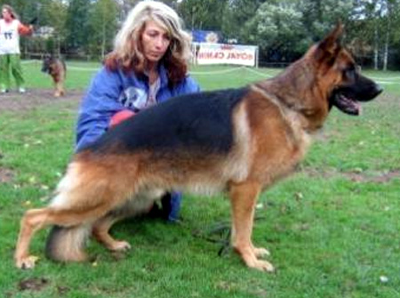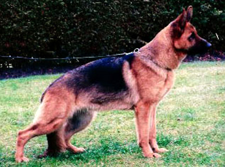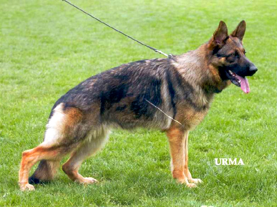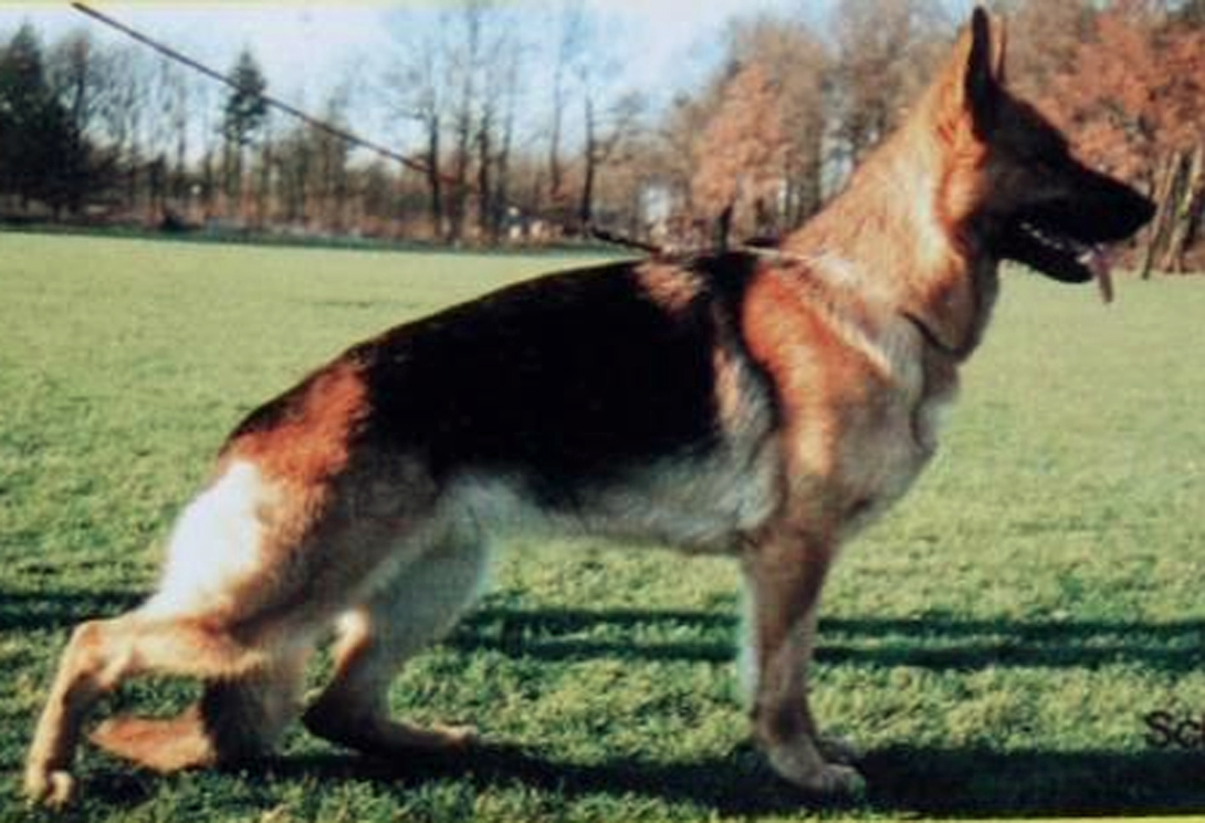 Medium size, medium strong, in good proportion built female with good pigmentation. Good head and expression, high withers, straight, firm back, good length and position of the croup, good fore, very good hind angulations. Balanced chest proportions, correct front. Straight stride, fluid, ground covering gait. Secure nature, TSB pronounced; does not let off.