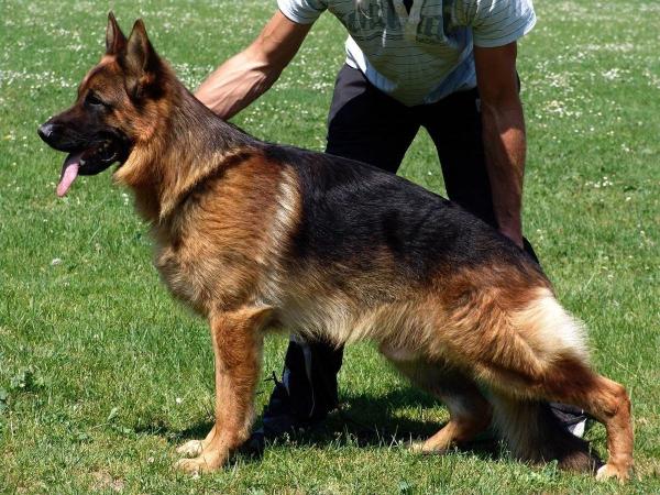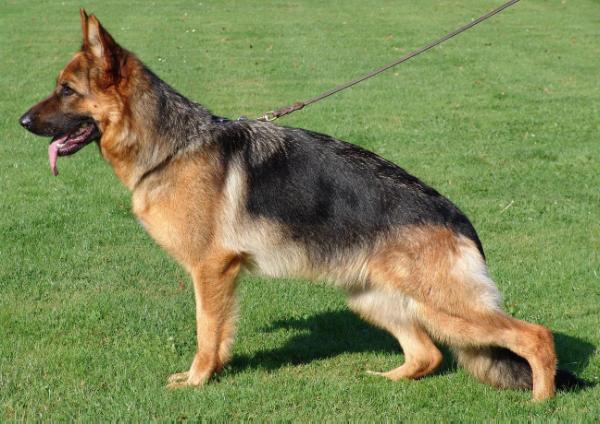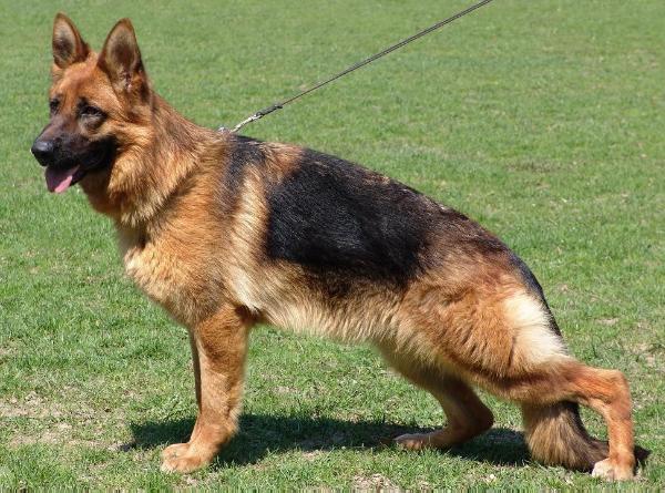 Over medium size, medium strong, full of content, strong head, very nice expression, very good building harmony, very nice line flow, emphasized structure, correct front, pronounced withers, correctly laid croup, very well angulated in the forequarters and hindquarters, free, encouraging movement with a powerful after-thrust. TSB pronounced; lets off.