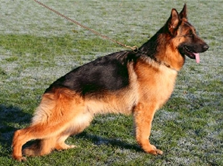 Large, striking type- and expressive, strong, dry and firm. Good body proportions, strong head, high withers, good top and bottom line, normal position and length of croup, very good angulation, straight front and sequence of steps, powerful, far outreaching gait with good back transmission with effective supply and free precedence. Safe nature, TSB pronounced; drained off. Groß, auffallend typ- und ausdrucksvoll, kräftig, trocken und fest. Gute Gebäudeverhältnisse, kräftiger K...Read more