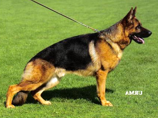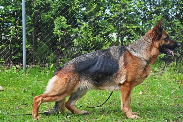 Ausdruck und Gepräge. Hoher, langer Widerrist, schöne Linie, gute Länge und Lage der Kruppe. Einwandfreie Winkelungen in Vor- und Hinterhand, ausgeglichene Brustverhältnisse, gerade Front. Korrekte Schrittfolge, sehr flüssige Gänge mit kraftvollem Nachschub und freiem Vortritt. Sicheres Wesen, TSB ausgeprägt; läßt ab.