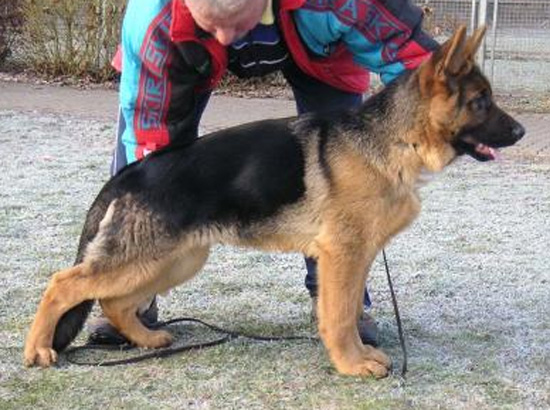 Striking type, expressive, very well pigmented, large, strong, dry, firm, very good body proportions, very good character. High, long withers, harmonious top, bottom line, very good Krupp length, plant. Very good front and rear angulation, mature chest proportions, straight front. Straight gaiting, very liquid and very space-creating, very strong courses with very effective supply and free precedence. Nature surely, UCB pronounced.