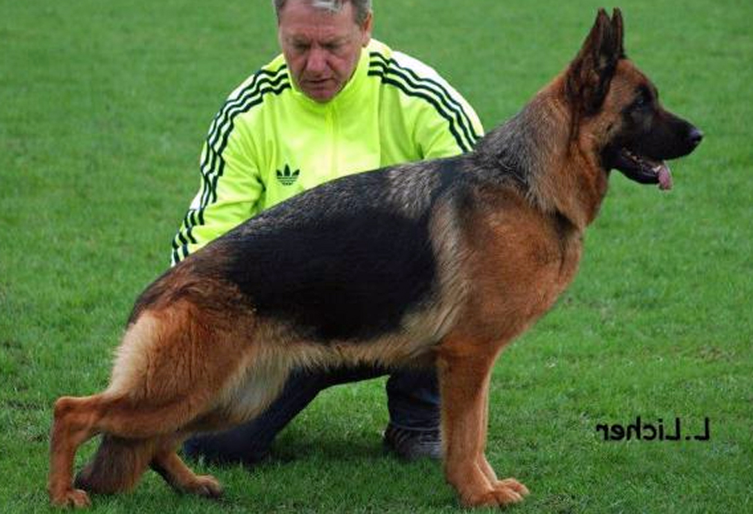 Der Jugendbeste aus dem Jahr 2008 ist groß, kräftig und gehaltvoll, mit einem kräftigen ausdrucksvollem Kopf. Hoher Groß, kraft-, gehaltvoll, sehr typ-, ausdrucksvoll, richtiges Rüdengepräge, hoher Widerrist, Rücken gerade, Kruppenlänge, -lage korrekt, Schulterblattlänge, -lage sehr gut mit korrekt angelagertem Oberarm. Hinterhandwinkelung sehr gut, Vor- und Unterbrust korrekt, Frontlinien gerade, gerade Trittfolge vorne und ...Read more