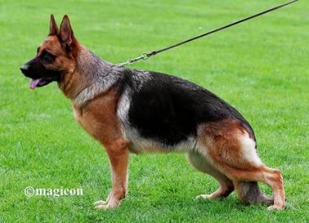 Very expressive, large, medium-strength, dry, firm, slightly elongated, well-pigmented female. High withers, straight back, good length and position of the croup. Good front, very good angled back, balanced chest, straight front. Stepping tight at the back and straight at the front, it shows very powerful, expansive, flowing corridors with good majesty. Safe being, TSB pronounced; lets off.