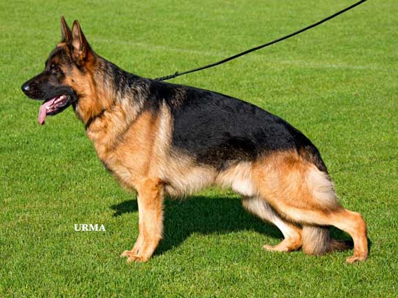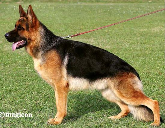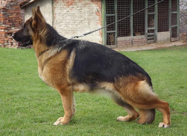 Large, powerful, strong head, very nice type and expression, very good building harmony, very nice flow of lines, dry and firm, correct front, pronounced withers, correctly positioned croup, very well angled in the fore and hindquarters, straight, free, powerful Gait. TSB pronounced; does not stop.