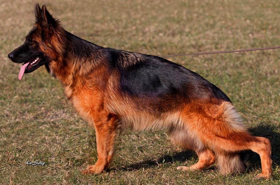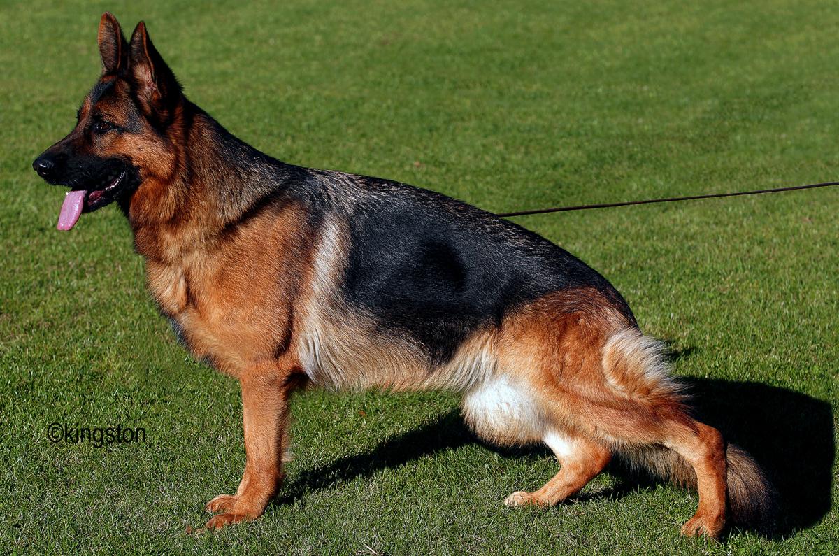 Big, expressive dog, in a very good relation with commendable pigmentation. Very nice head with dark mask, noble expression, high withers, straight back, well positioned croup should be slightly longer, very good advantages and good breast, good pre- and very good rear angulation, correct front. Front and rear stepping shows powerful, thrusting gait with very good reach. TSB pronounced. V. Dry and solid, expressive male with very good topline and rear angulation. VI. Suitable for improving the...Read more