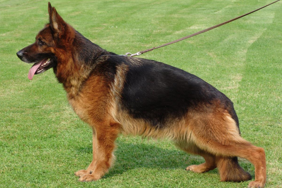 Groß, gehaltvoll, mittelkräftig, trocken und fest, sehr gute Gebäudeverhältnisse, guter Ausdruck, gut pigmentiert, gutes Gepräge. Hoher, langer Widerrist, gerader, fester Rücken, sehr gute Länge und Lage der Kruppe. Korrekte Winkelungen der Vor- und Hinterhand, ausgeglichene Brustverhältnisse, gerade Front. Vorne und hinten gerade tretend, gerade Schrittfolge, kraftvolle, raumgreifende Gänge mit wirksamem Nachschub und freiem Vortritt., bei guter Erhabenheit. Sicheres Wesen, TSB ausgepr...Read more