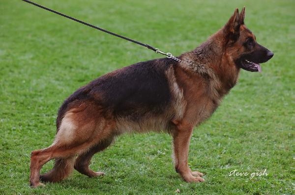 Strikingly expressive, excellent character. Harmonious upper and lower line, high withers, straight back. Well positioned, long croup. Correct angulations, balanced breasts, straight front. Slightly tight at the back, stepping straight at the front. Shows very expansive gaits, with good equilibrium. Essence sure, TSB pronounced. 1. Strikingly powerful and full-bodied female with a very harmonious overall appearance. 2. Suitable for improving the character, the building proportions and the angula...Read more