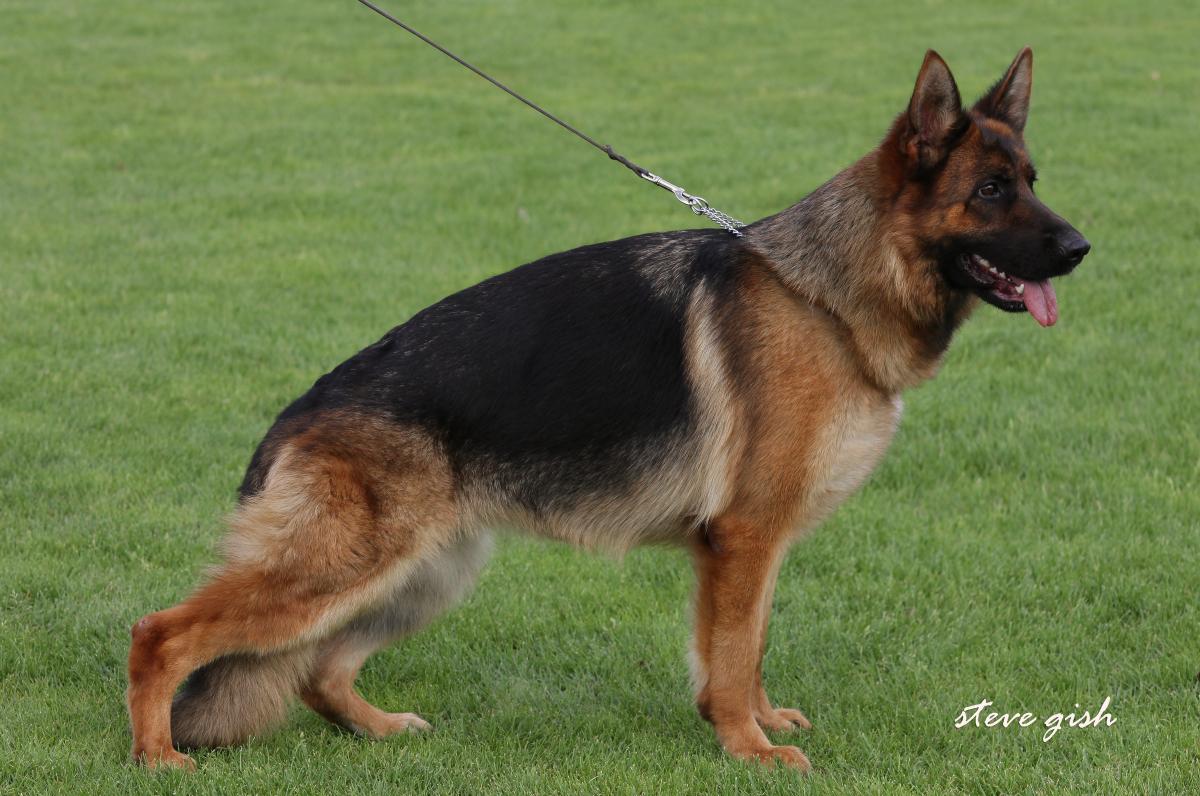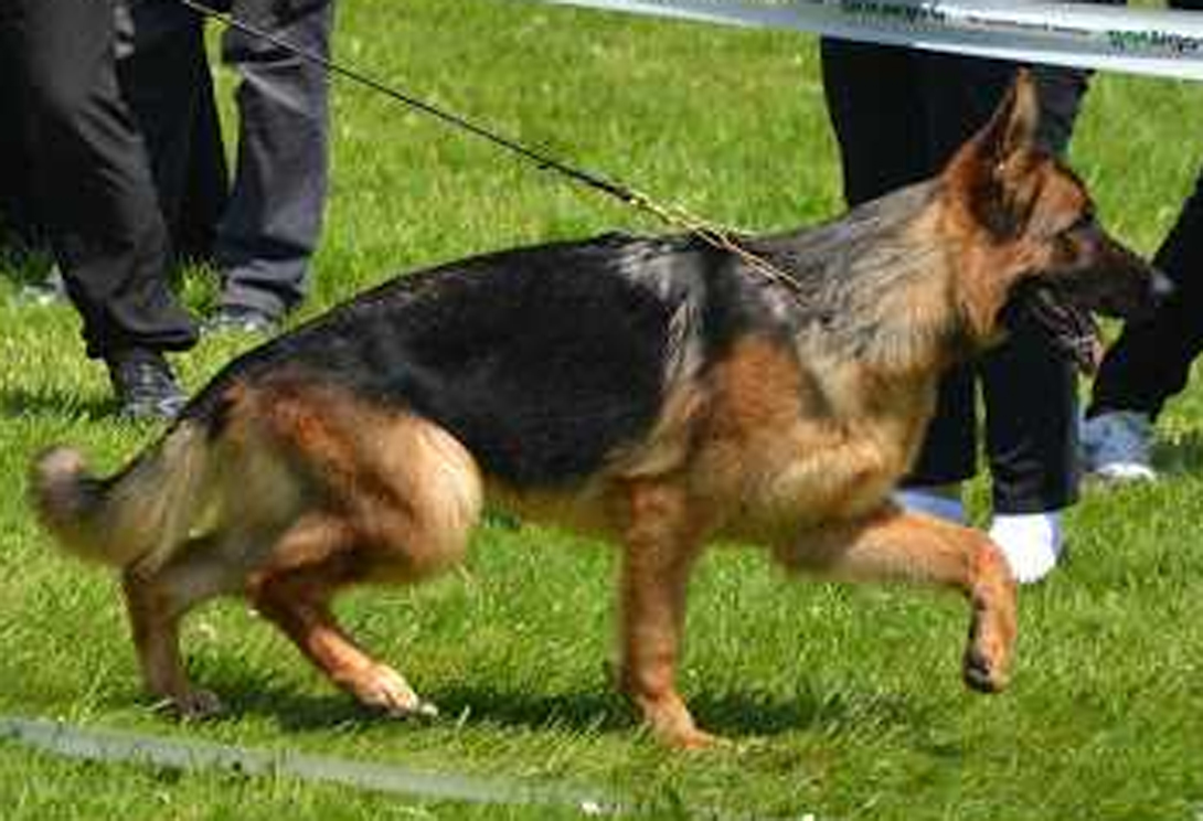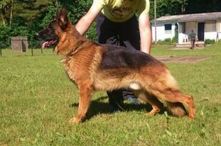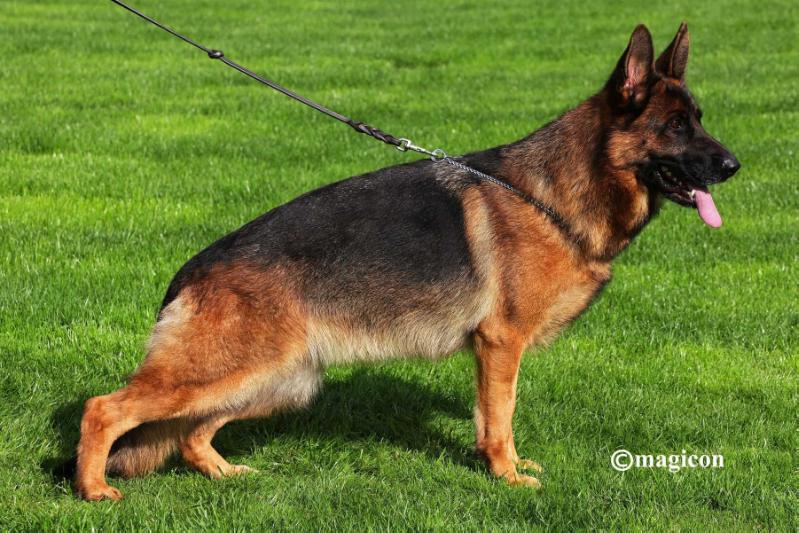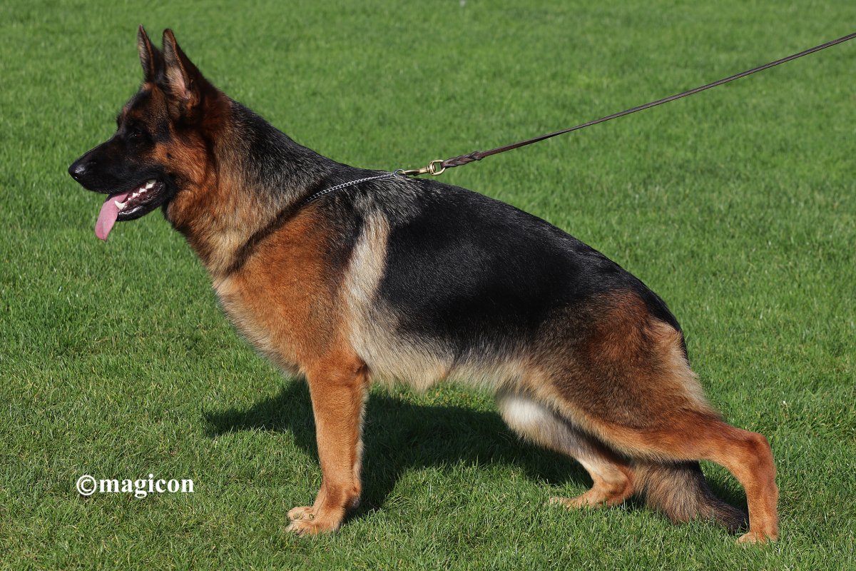 Large, strong, very expressive, dry and firm male with correct building conditions, very strong head with dark mask, high withers, straight back, very good length and position of the croup, balanced chest ratios, correct front, back and front straight kicking, wide-ranging, powerful corridors with free protruding and very effective replenishment with very good sublimeness. Beings safe, TSB pronounced.Großer, kräftiger, sehr ausdrucksvoller, trockener und fester Rüde mit korrekten GebÃ...Read more
