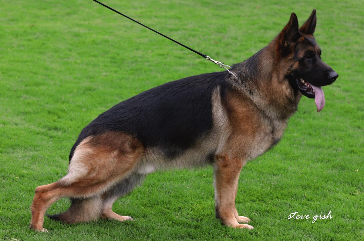 Groß, kraft- und gehaltvoll, gut pigmentiert, kräftiger Kopf, guter Ausdruck, ausgeprägte Maske. Hoher Widerrist, gerader, fester Rücken, geringfügig kurz gelagerte Kruppe, gute Winkellagen, ausgeglichene Brustverhältnisse. Gerade Front und Schrittfolge, flüssige, raumgreifende Gänge. Sicheres Wesen, TSB ausgeprägt.