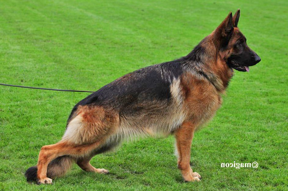 Medium size, medium strong, substantial, very good conformation, very typey and expressive. High withers, very good topline, good length and position of croup. Very good length and position of upper arm and shoulder blade, very good hindquarter angulation. Straight front, correct underline, straight step sequence, shows very powerful, far reaching gait with very good elevation. Secure nature, TSB pronounced.