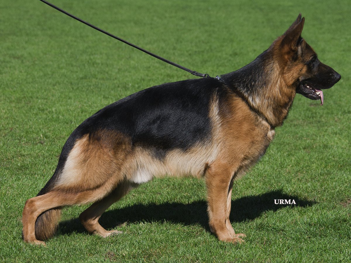 Übermittelgroß, mittelkräftig, gehaltvoll, sehr typ- und ausdrucksvoll, in sehr gutem Höhen- und Längenverhältnis aufgebaute Hündin. Kräftiger, ausdrucksvoller Kopf mit dunklem Auge, hoher Widerrist, gerader, fester Rücken, sehr gute Lage und Länge der Kruppe. Sehr gute Winkelungen der Vor- und Hinterhand, ausgeglichene Brustverhältnisse, korrekte Front. Bei gerader Schrittfolge zeigt sie ein sehr kraftvolles, weit ausgreifendes Gangwerk mit sehr guter Präsentation. Sicheres Wesen, TSB ausgeprägt.