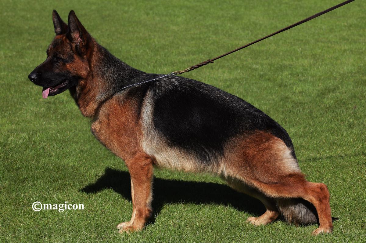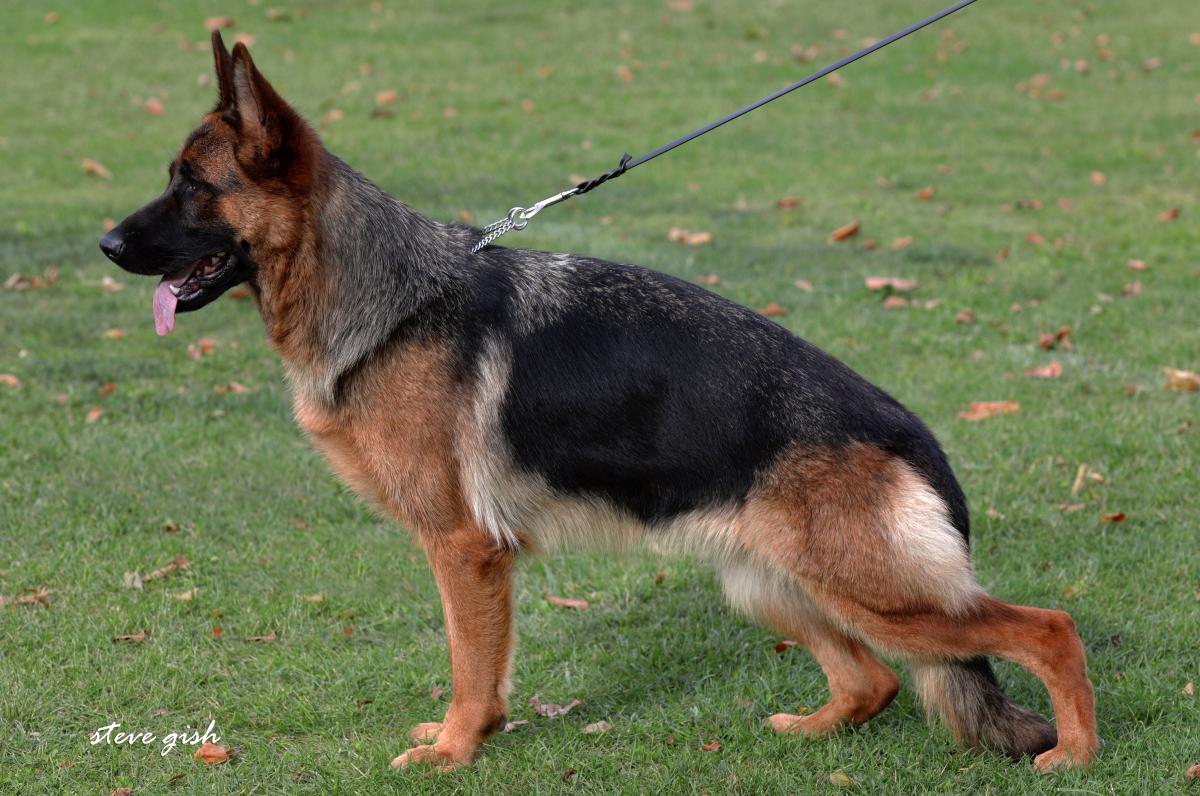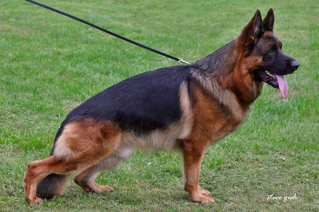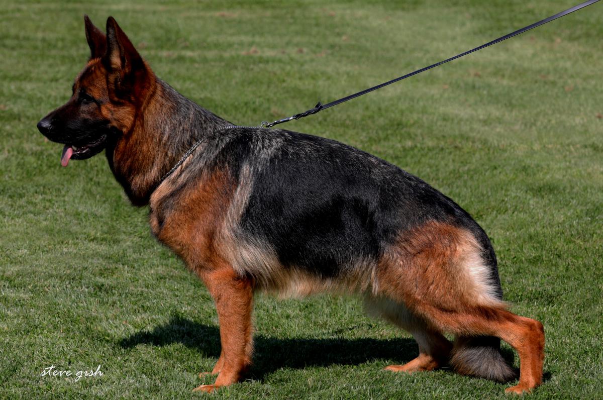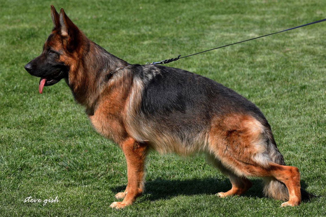 Large, strong, expressive, very good ratio, high withers, firm back, croup should be a little longer in good position. Balanced chest, good angulation of the fore and very good angulation of the hindquarters, wide toe in front, straight kicks in the back, good, powerful, expansive gaits. TSB pronounced.